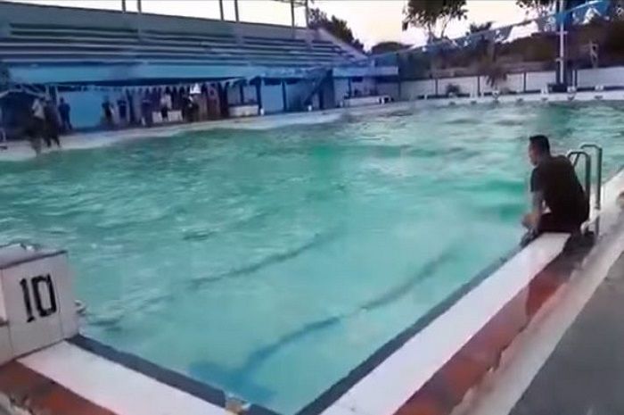 Video tersebut memperlihatkan suasana di kolam renang Puslatdiksarmil TNI AL Juanda Surabaya.